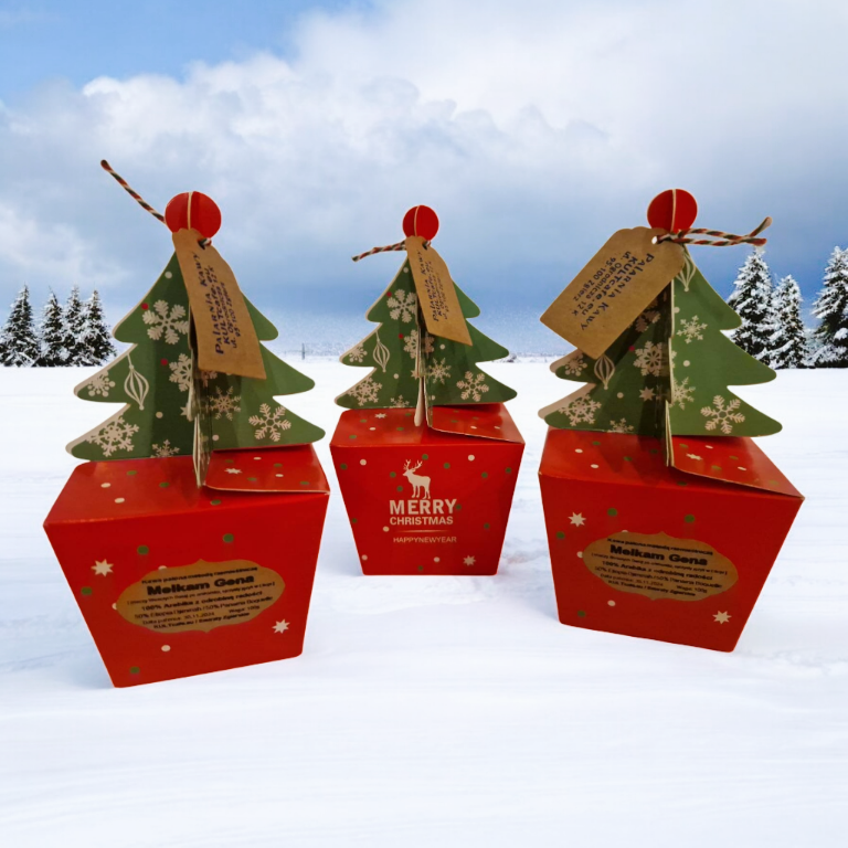 Idealny prezent dla kawosza i nie tylko. Piękne pudełko w kształcie choinki, które idealnie sprawdzi się pod choinkę. W środku znajdziesz torebeczkę wypełnioną ziarnistą, świeżo paloną kawą premium, odmiany Meksyk SHG 100g.