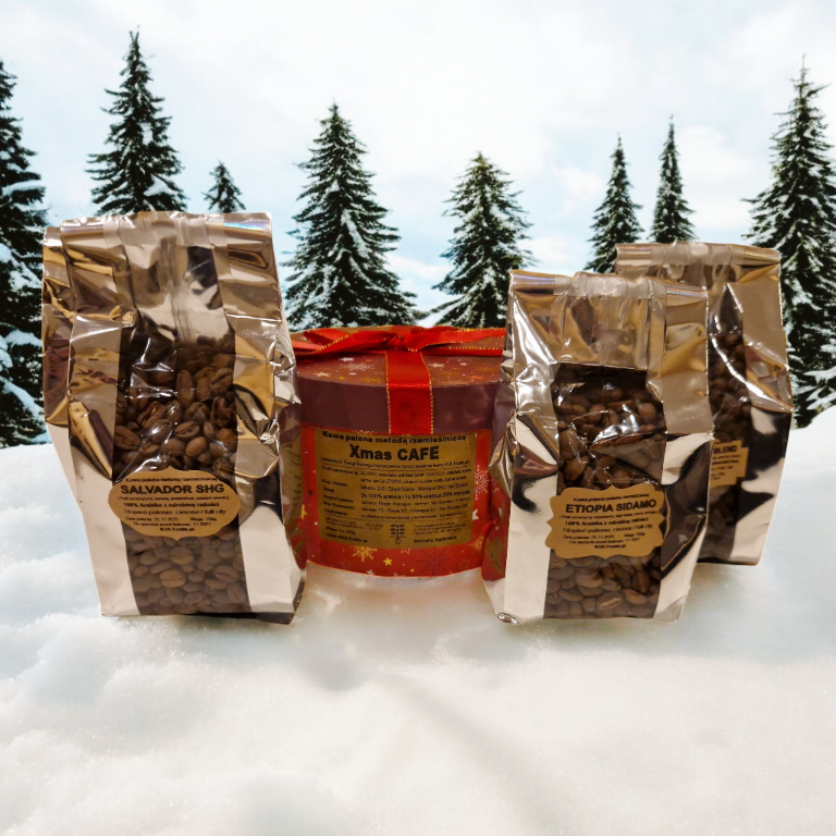 Idealny prezent dla kawosza i nie tylko. Piękne opakowanie prezentowe, które idealnie sprawdzi się pod choinkę. W środku znajdziesz cztery torebeczki wypełnione ziarnistą, świeżo paloną kawą premium po 125g każda.